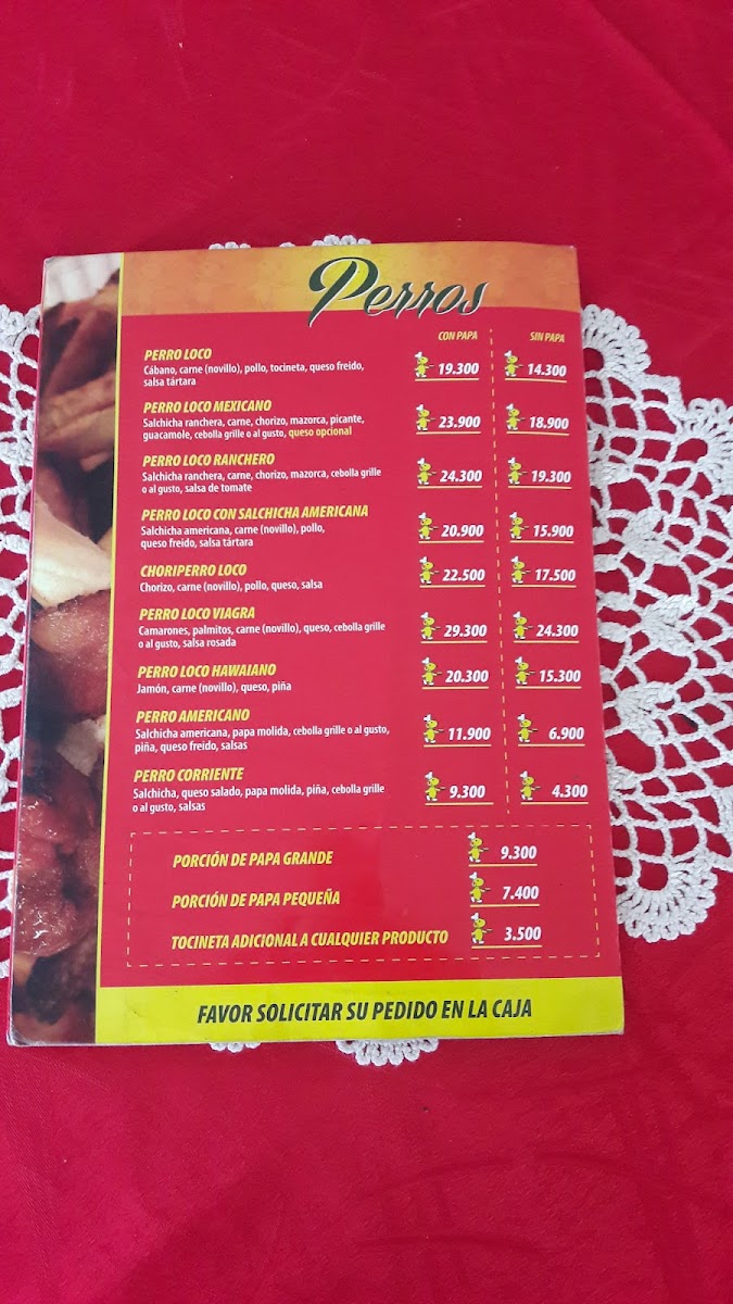 Perro Loco, located in Bucaramanga, Santander, Colombia, is a culinary gem celebrated for its generous portions and flavorful dishes. With an enthusiastic team committed to outstanding service, the restaurant caters to food lovers seeking hearty meals and unlimited sauces. Customers rave about the delectable hot dogs and the welcoming atmosphere, making each visit memorable. Whether you're indulging in classic comforts or exploring bold flavors, Perro Loco promises a satisfying experience at an excellent price. This isn’t just a meal; it’s a celebration of good food and warm service that leaves guests coming back for more.